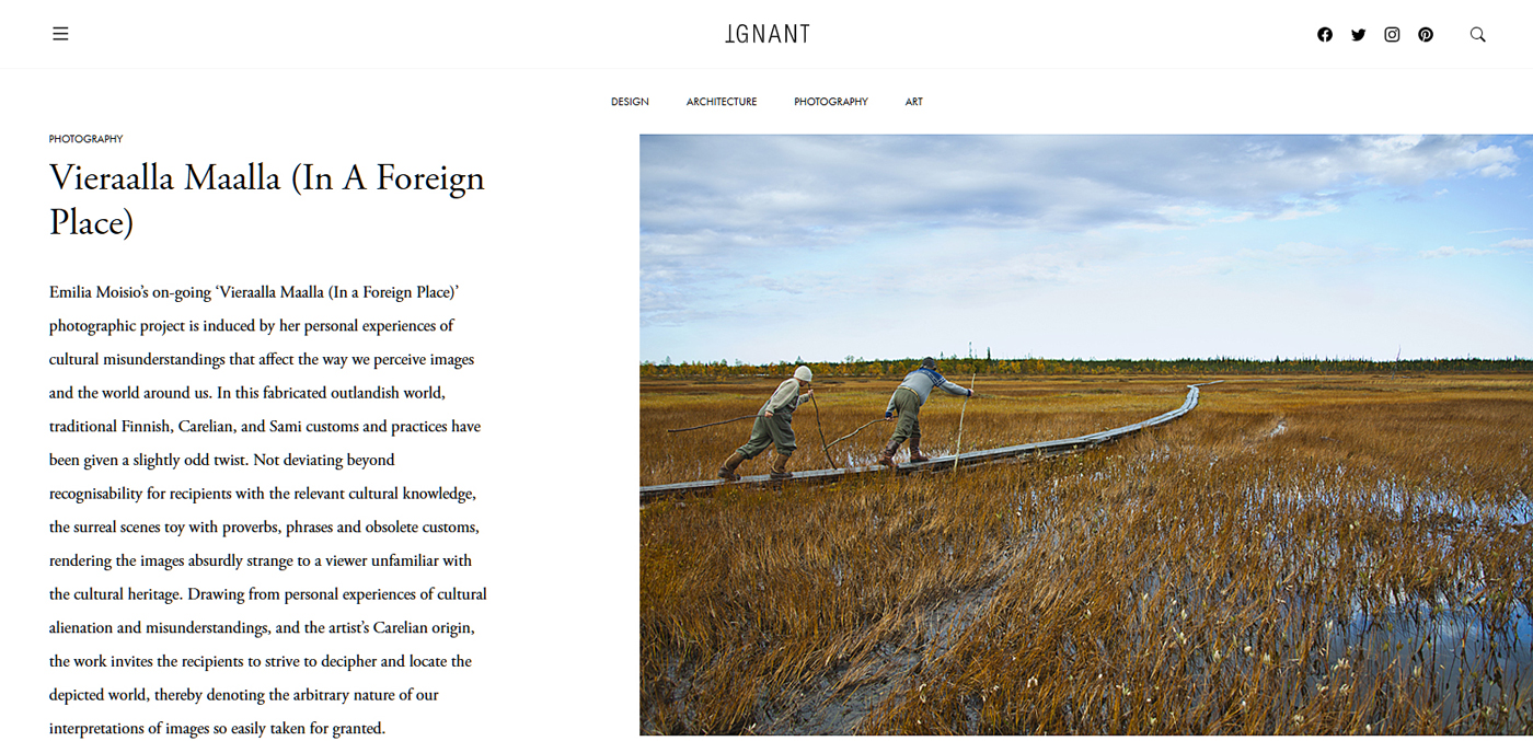 Online art, design, photography, travel and architecture magazine IGNANT features Vieraalla maalla (In a Foreign Place).